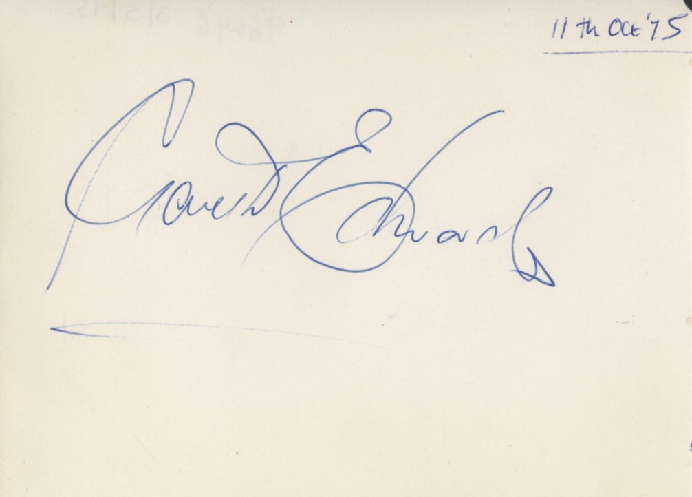 Album page with the ink autograph of Gareth Edwards, dated 1975.