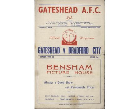 GATESHEAD V BRADFORD CITY 1955-56 FOOTBALL PROGRAMME