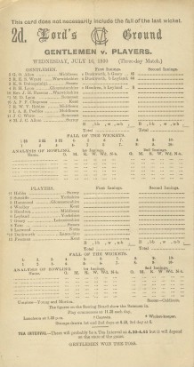 Cricket » Cricket Scorecards » Representative Teams » GENTLEMEN V PLAYERS 1930 CRICKET SCORECARD