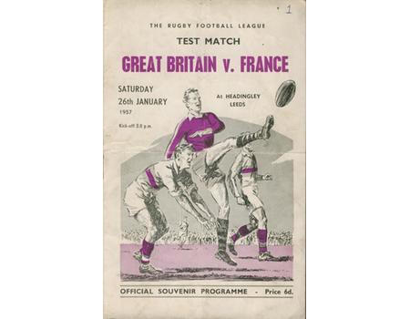 Programme for the match at Headingley, 26th January 1957. Britain won 45-12.
