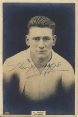 Large "Pinnace" card,  titled 'H. Bagge, Fulham'. Series number 1086. Bagge played for Fulham from 1919-27. 15 x 10cm. Very good. Signed to front in pencil.