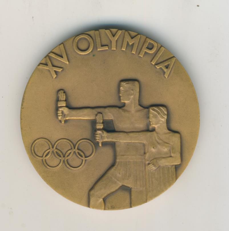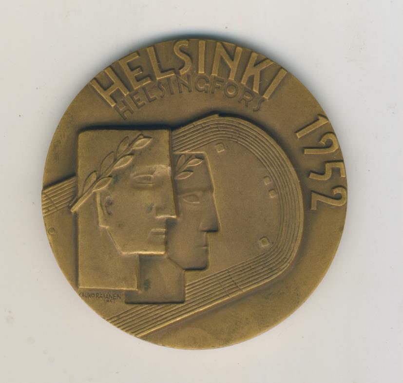 An original participation medal for the 1952 Helsinki Olympics. This was presented to Pat Besford, the well-known swimming journalist and Olympic administrator.