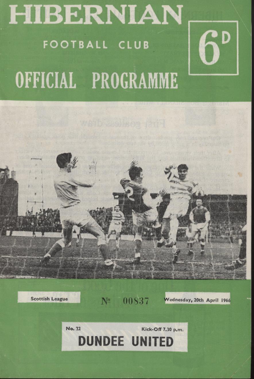 HIBERNIAN V DUNDEE UNITED 1965-66 FOOTBALL PROGRAMME