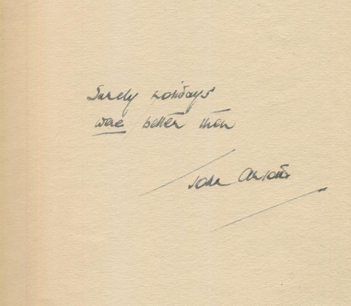 First edition. 8vo. 171pp. Dust-wrapper, lightly rubbed. A very good copy. Signed very nicely by Arlott to fly-leaf with the inscription "Surely holidays WERE better then".