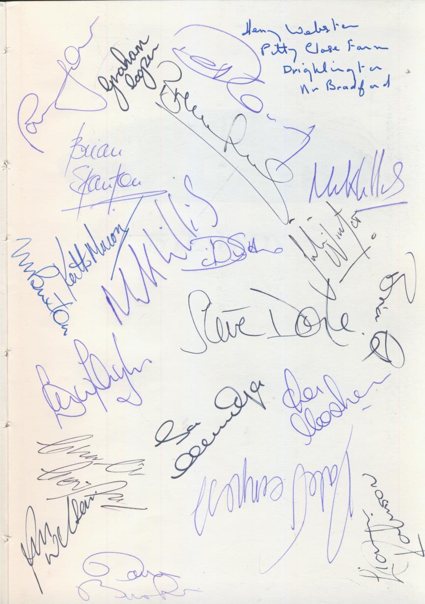 Thick 8vo. 434pp. Text illustrations. Dust-wrapper, rubbed at head and tail of spine. Owner's name and address to fly-leaf. A very good copy. Signed by at least 20 players from the early 1980's to fly-leaf and many other great players from the club's history to relevant internal pages and photographs. These include Denis Law, Frank Worthington, Billy Price, Len Butt, John McKenna (?), Gordon Low, Eddie Boot, John McHale, Bobby Collins, Hugh Turner, Ray Wilson, Trevor Cherry, Peter Fletcher, Peter Doherty, Steve Smith and Vic Metcalfe.