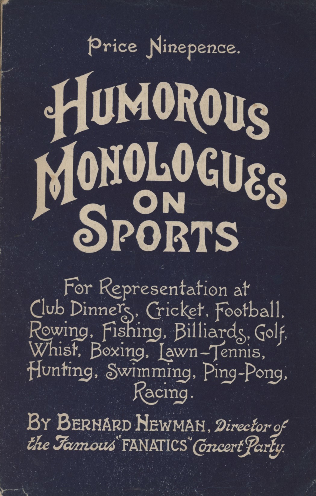 Period after-dinner speeches, many in poetic form, all concerned with sports including cricket, football, rowing, golf and boxing. Never be the dull one at a party again.