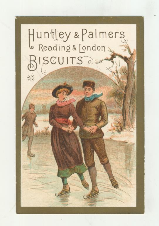 Other Sports » Winter Sports » Skating » Memorabilia » HUNTLEY AND PALMERS BISCUITS TRADE CARD C. 1880 - ICE SKATING