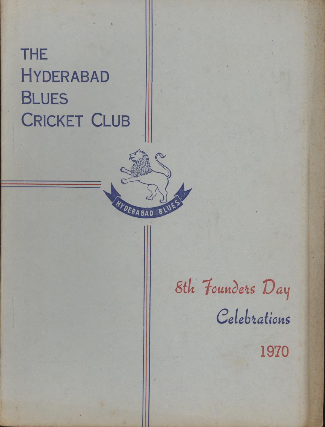 Cricket » Cricket Brochures » General Cricket Brochures » THE HYDERABAD BLUES CRICKET CLUB - 8TH FOUNDERS DAY CELEBRATIONS 1970