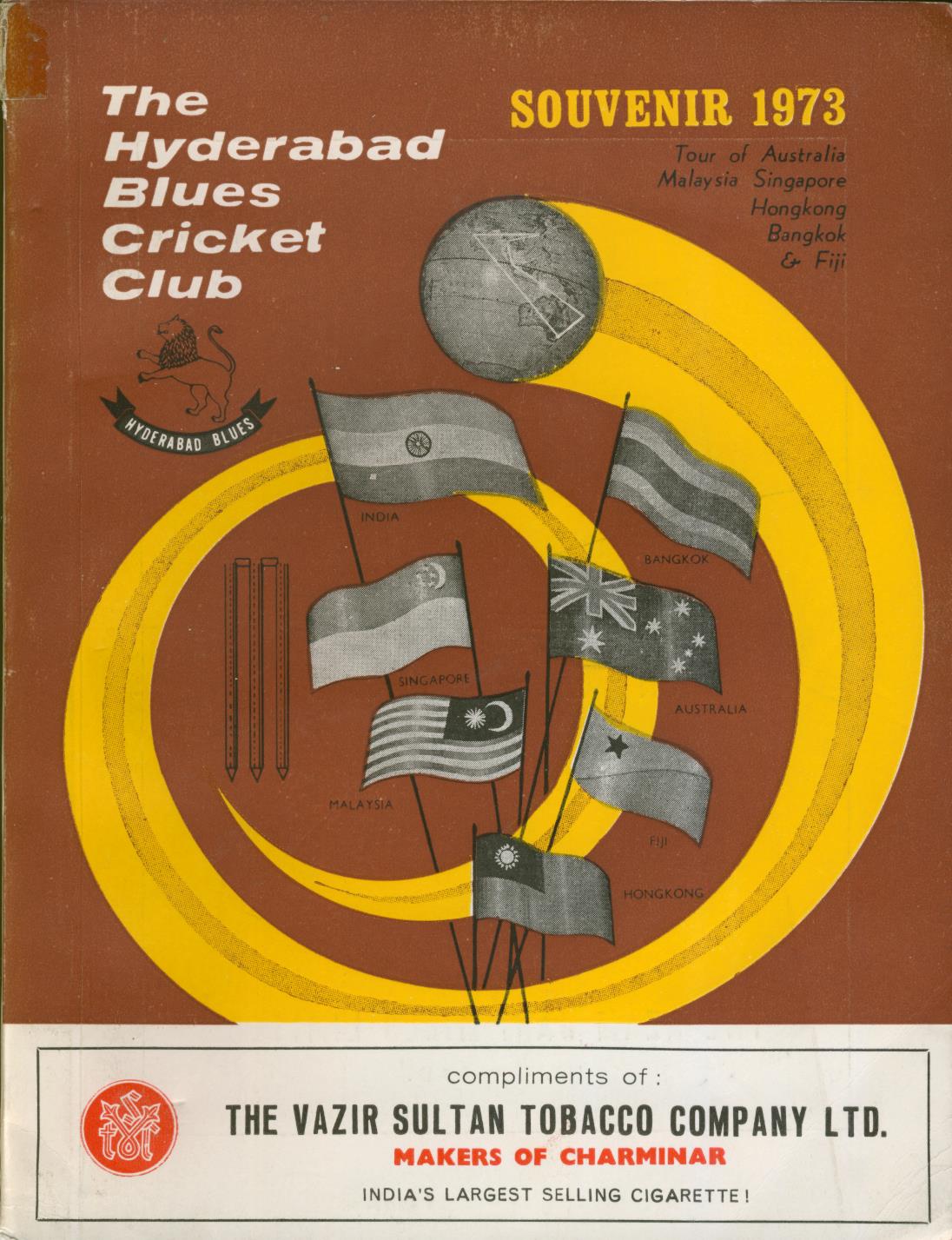 Souvenir brochure for the Hyderabad Blues cricket tour of Australia, Malaysia, Singapore, Hong Kong and Fiji.