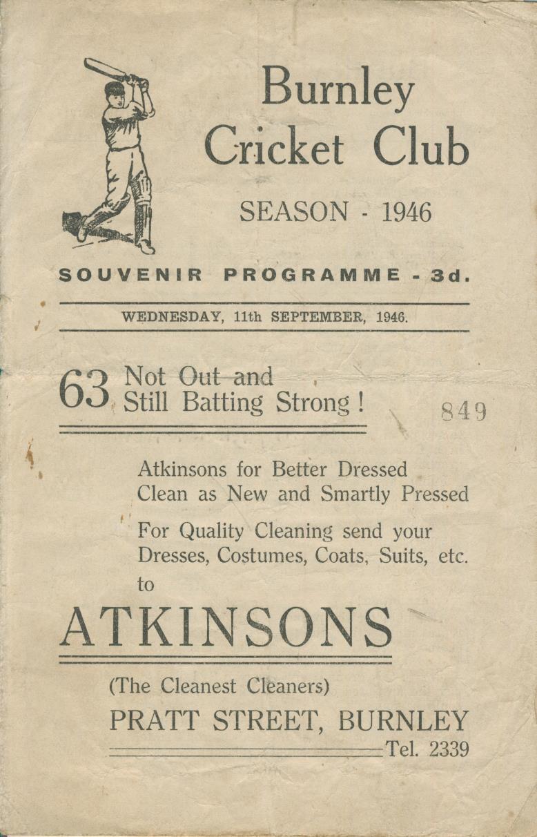 Cricket » Cricket Programmes » Other Cricket Matches » INDIA V PROFESSIONAL XI (BURNLEY CRICKET CLUB) 1946 CRICKET PROGRAMME