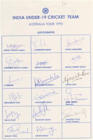 INDIA UNDER-19 (TOUR TO AUSTRALIA) 1995 CRICKET AUTOGRAPHS