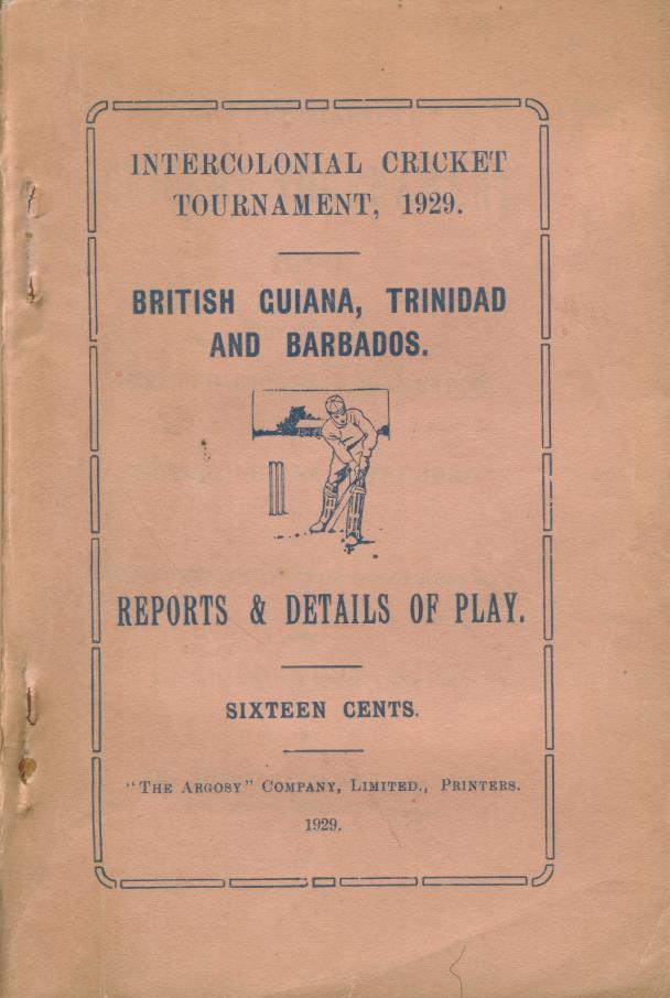 Cricket » Cricket Books » Cricket Tours & Tests » INTERCOLONIAL CRICKET TOURNAMENT 1929: BRITISH GUIANA V. BARBADOS AND BRITISH GUIANA V. TRINIDAD