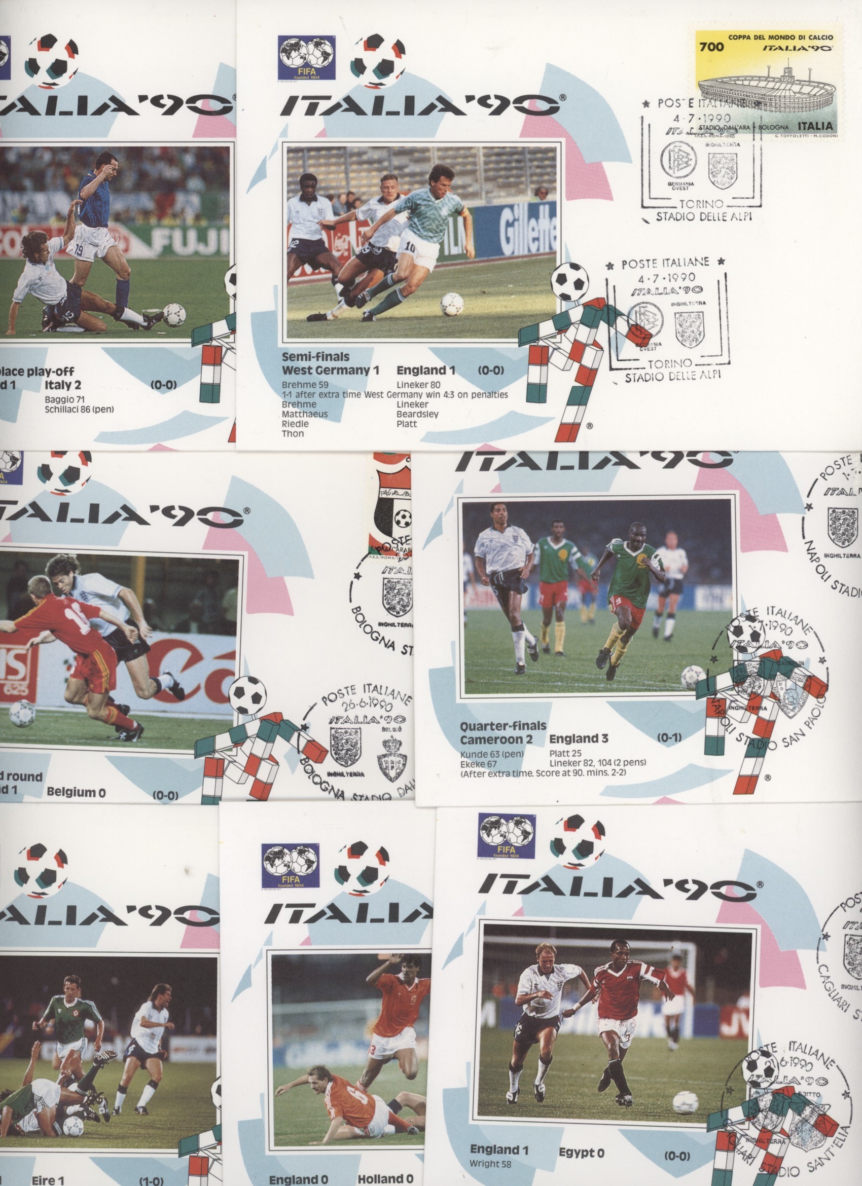 A full set of 7 First Day Covers covering all of England's matches at the 1990 World Cup.