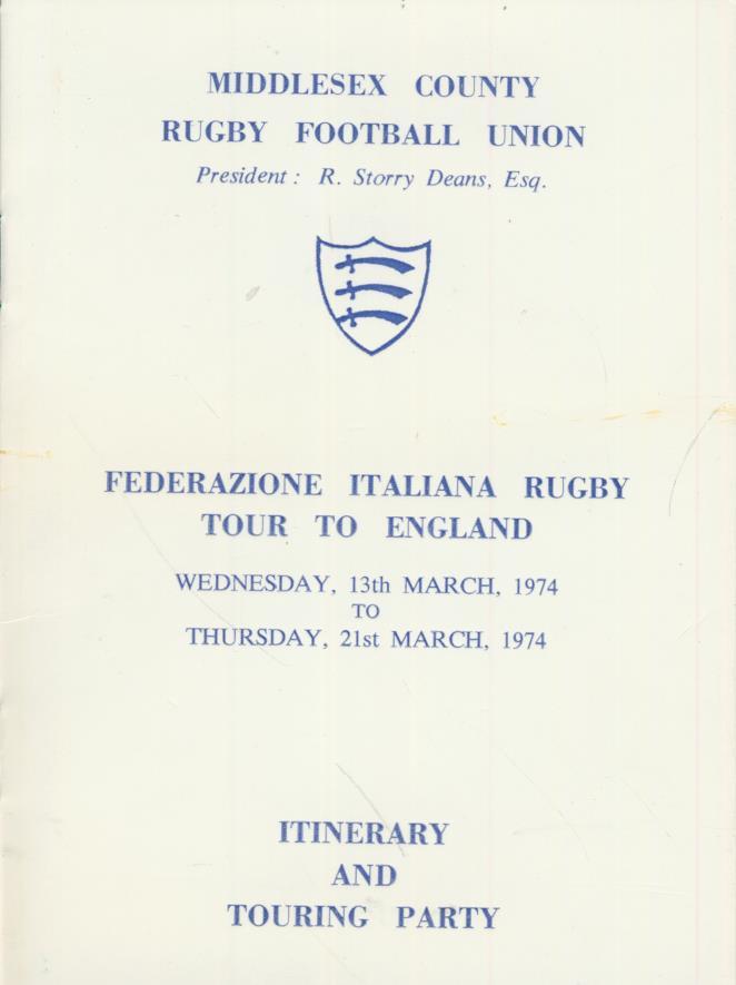 Rugby Union » Rugby Union Memorabilia » Rugby Itineraries » ITALY RUGBY TOUR TO ENGLAND 1974 ITINERARY AND TOUR PARTY