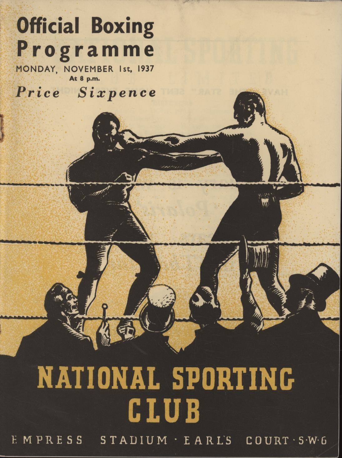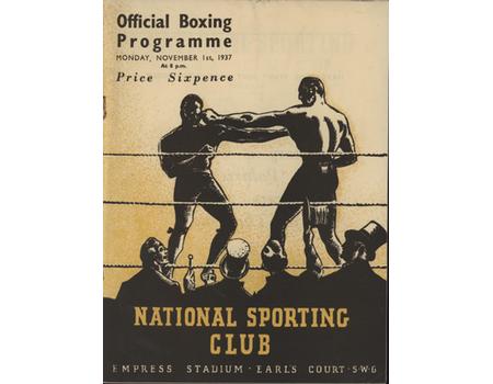 Official boxing programme for the contest at Empress Stadium, Earl's Court, London on November 1st 1937.