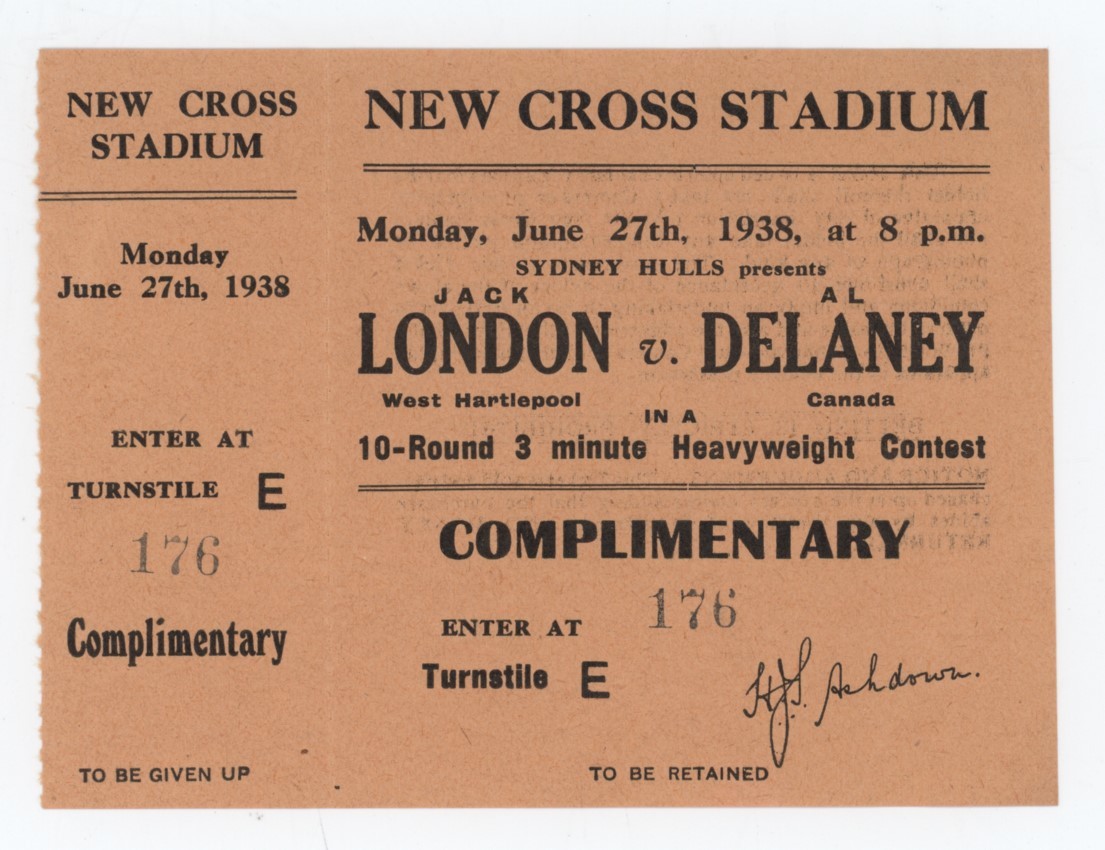 JACK LONDON V AL DELANEY 1938 (NEW CROSS) BOXING TICKET