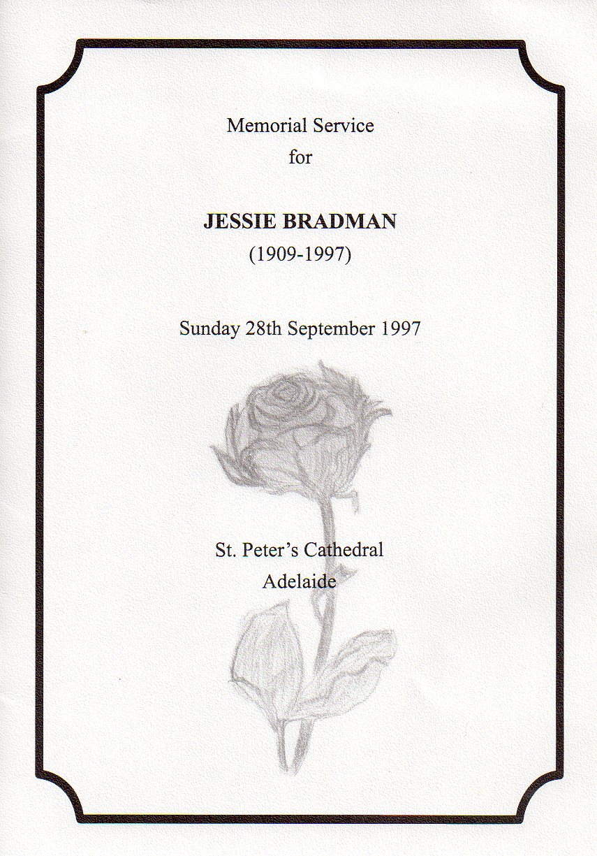 Cricket » Cricket Memorabilia » General Cricket » JESSIE BRADMAN (MEMORIAL SERVICE) 1997 - ORDER OF SERVICE