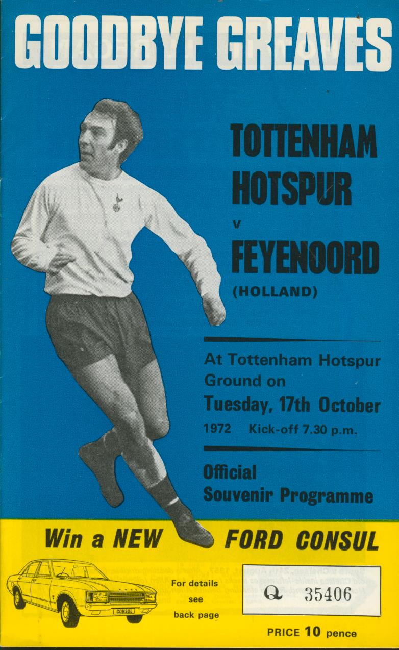 TOTTENHAM HOTSPUR V FEYENOORD 1972 (JIMMY GREAVES TESTIMONIAL) FOOTBALL PROGRAMME