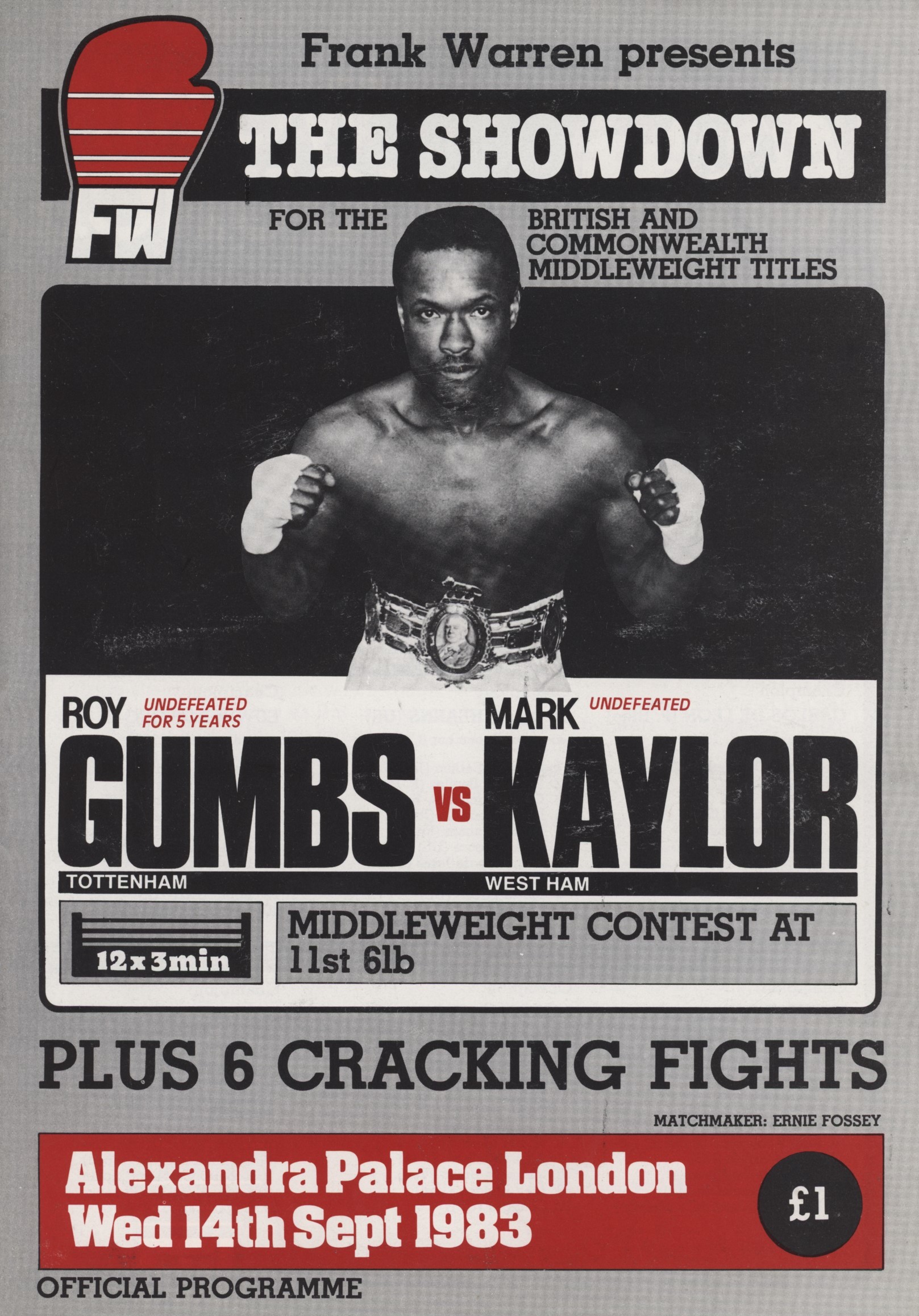 ROY GUMBS V MARK KAYLOR 1983 BOXING PROGRAMME