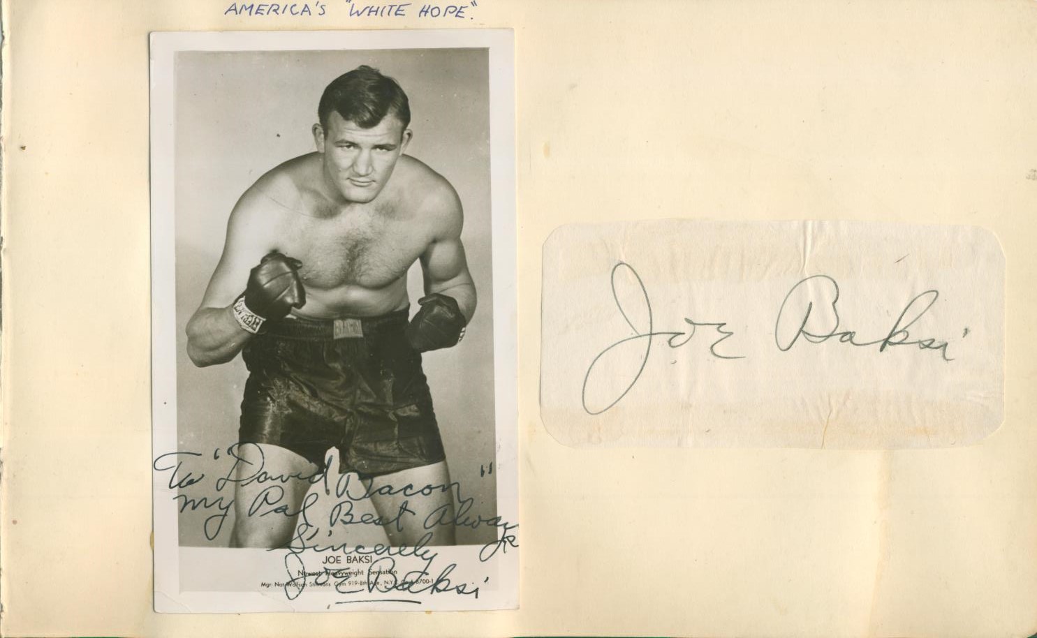 Other Sports » Boxing » Autograph Material » General » JOE BAKSI SIGNED POSTCARD AND ALBUM PAGE 1946