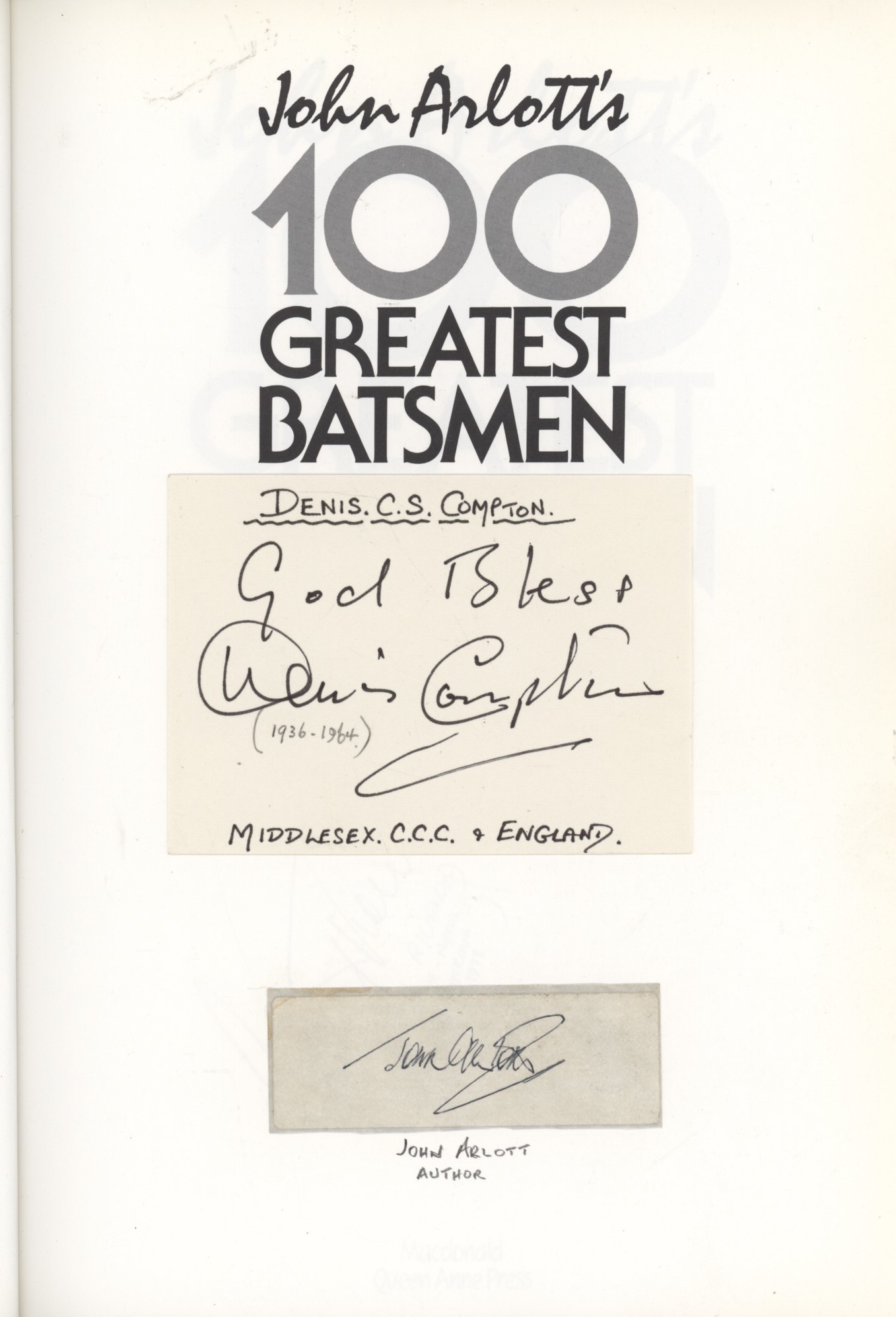 Cricket » Cricket Books » General Cricket » JOHN ARLOTT'S 100 GREATEST BATSMEN