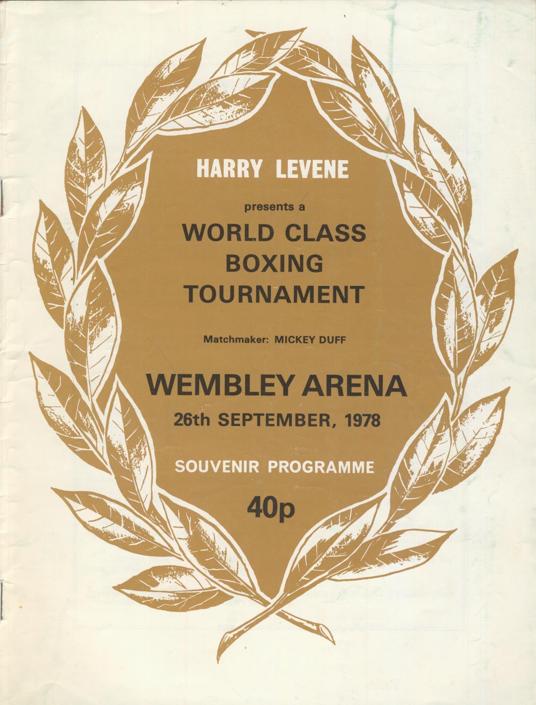 Official boxing programme for the fight at Wembley Arena, September 26th 1978.