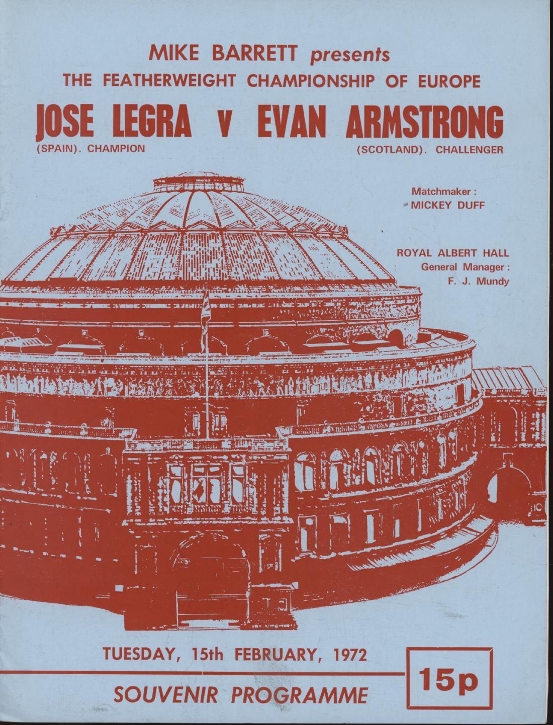JOSE LEGRA V EVAN ARMSTRONG 1972 BOXING PROGRAMME