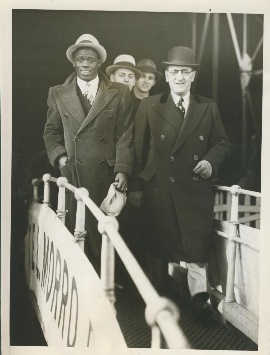 Original Press photograph of Kid Chocolate boarding a ship to return to Cuba to face charges from an ex-fiancee. He was at the height of his powers both in and out of the ring.