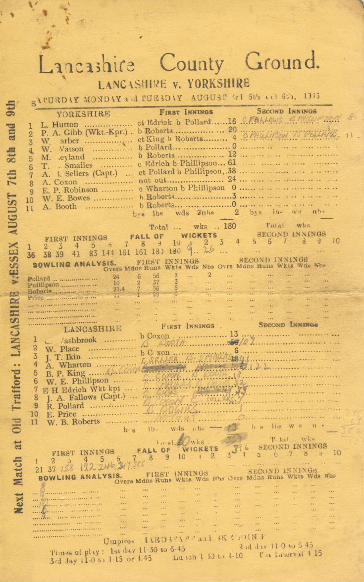 Cricket » Cricket Scorecards » Lancashire » LANCASHIRE V YORKSHIRE 1948