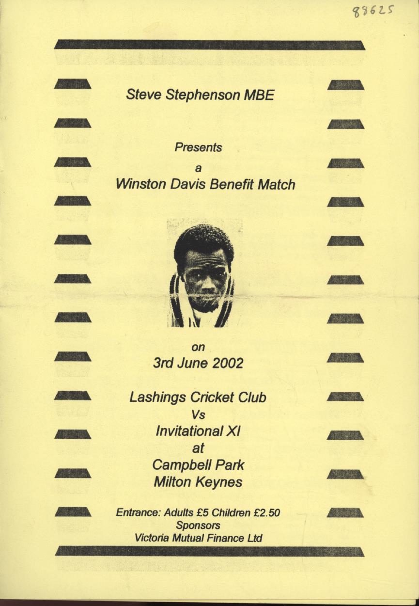 LASHINGS CRICKET CLUB V INVITATIONAL XI 2002 - WINSTON DAVIS BENEFIT MATCH PROGRAMME