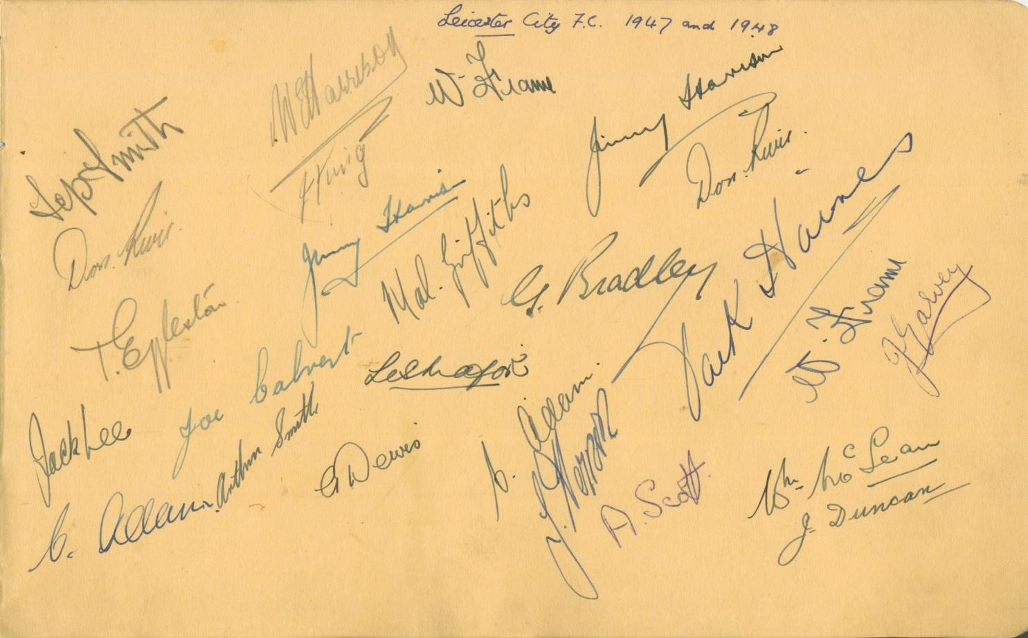 LEICESTER CITY 1947/48 AUTOGRAPH SHEET