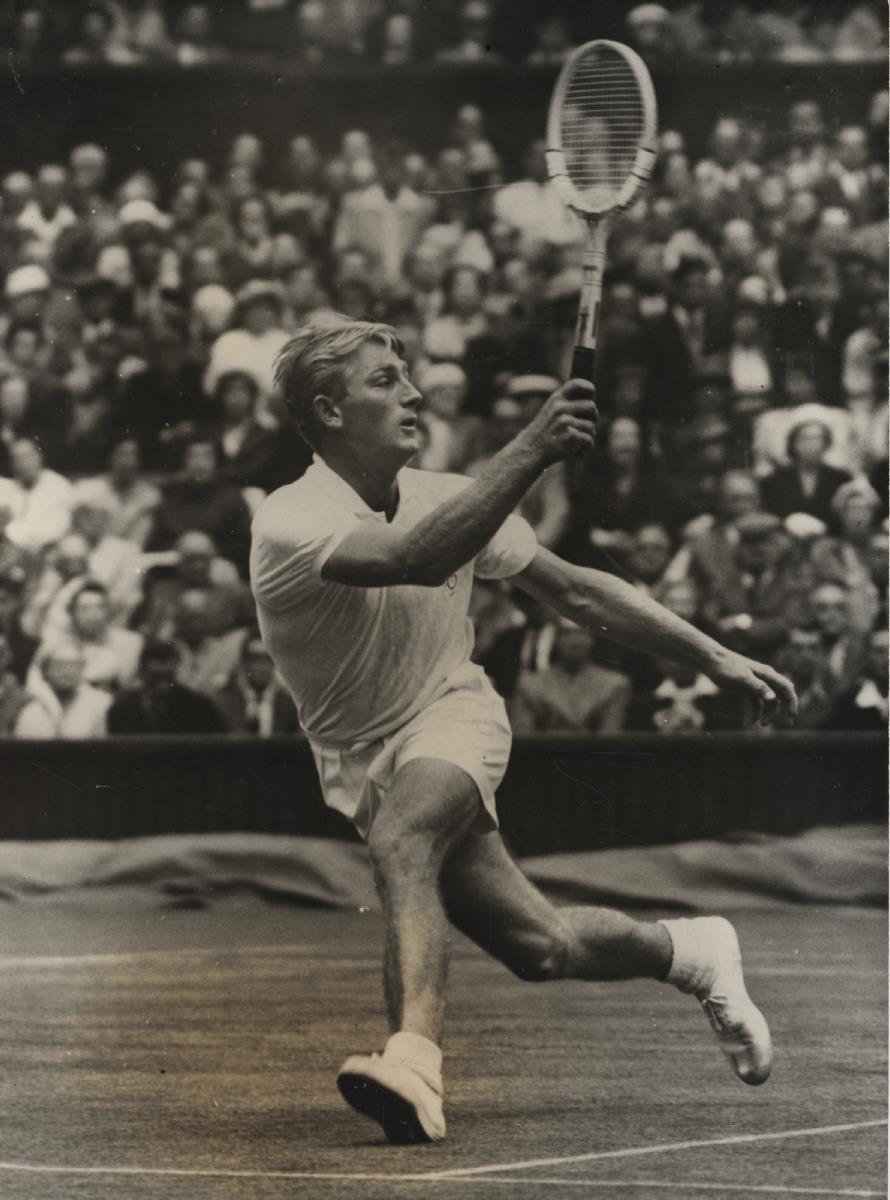 Original Press photograph of Lew Hoad at Wimbledon. Lew went on to win the Championship that year beating Ashley Cooper in straight sets in the final.
