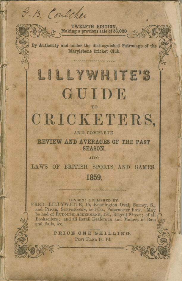 LILLYWHITE'S GUIDE TO CRICKETERS 1859
