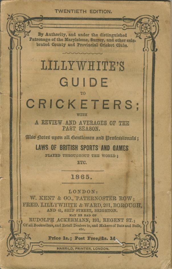 Cricket » Cricket Books » Lillywhite's Cricket Annuals » LILLYWHITE'S GUIDE TO CRICKETERS 1865 (TWENTIETH EDITION)