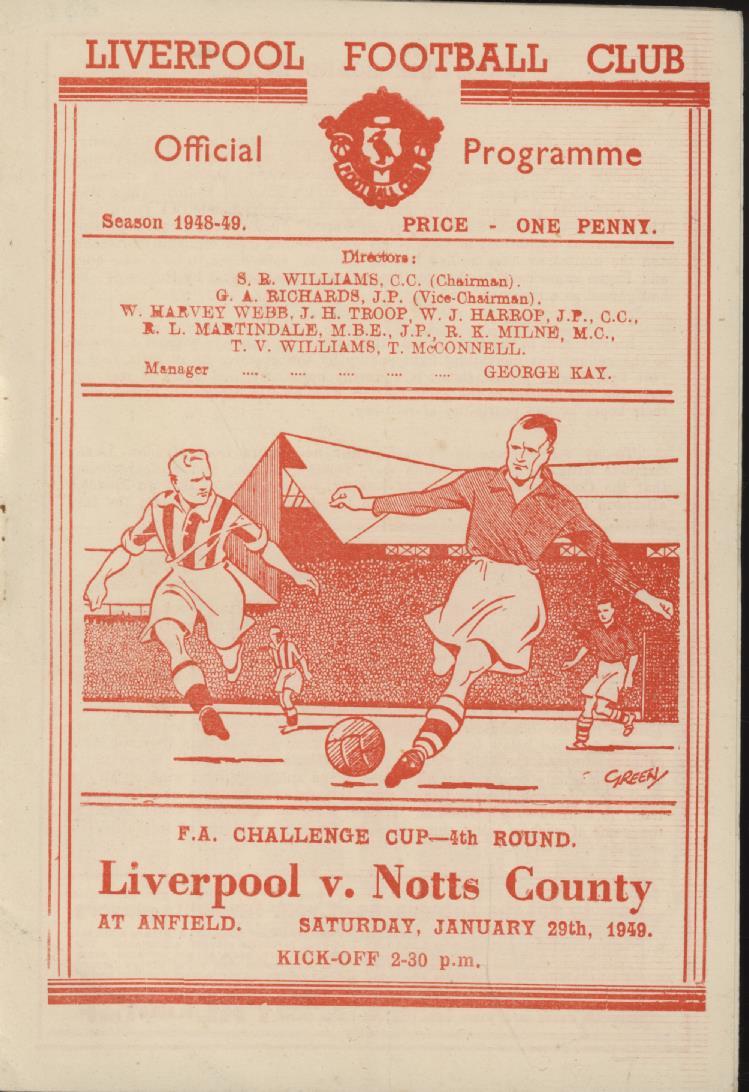 LIVERPOOL V NOTTS COUNTY (FA CUP 4TH ROUND) 1948-49 FOOTBALL PROGRAMME