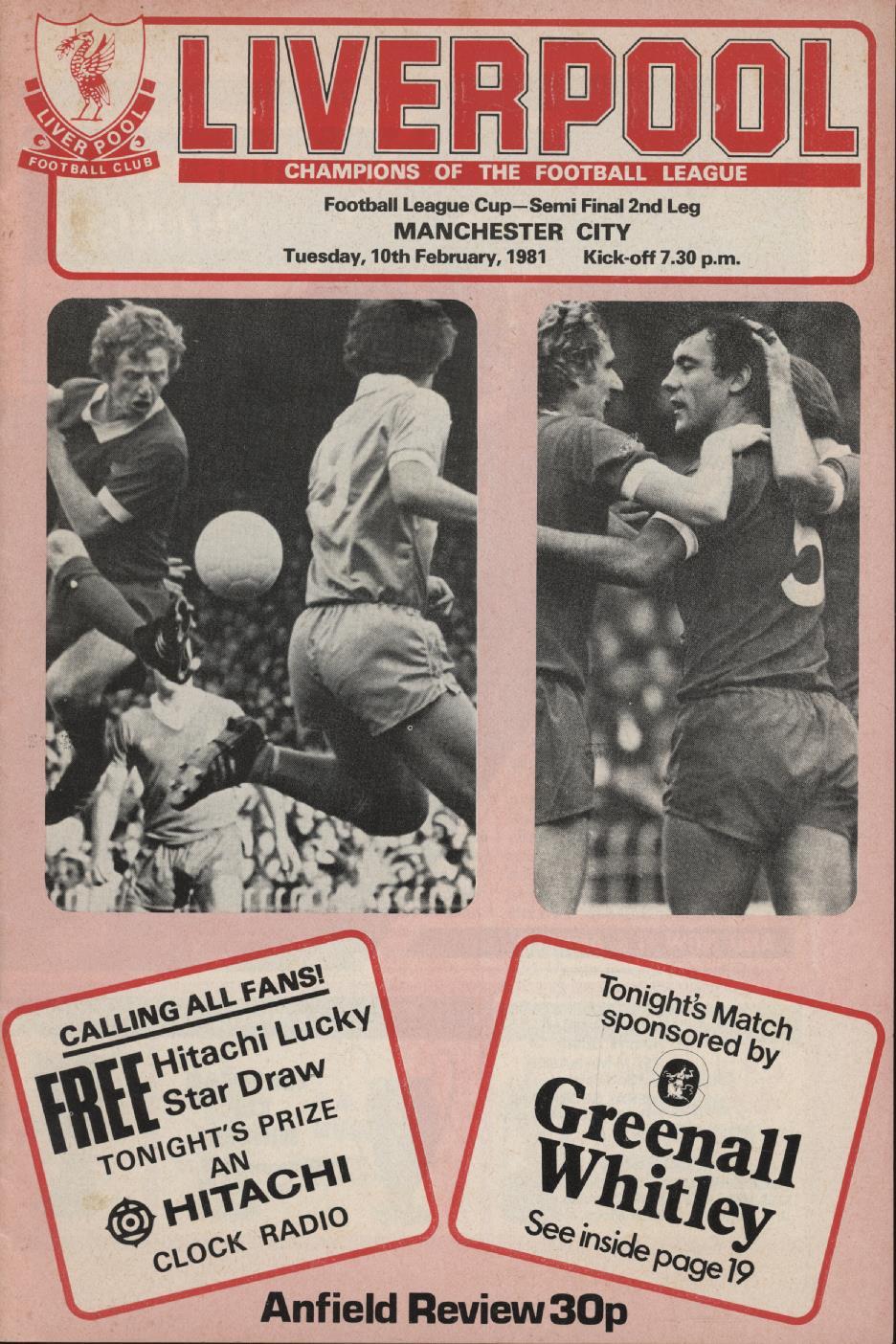 LIVERPOOL V MANCHESTER CITY 1981 (LEAGUE CUP SEMI FINAL) FOOTBALL PROGRAMME