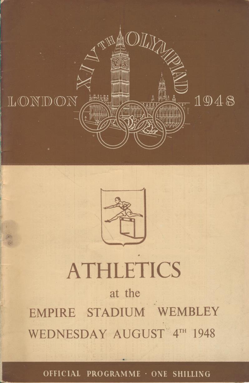 Official programme for the Athletics at the 1948 London Games at Wembley, 4th August 1948. Events that day included the hurdles and women's long jump finals.
