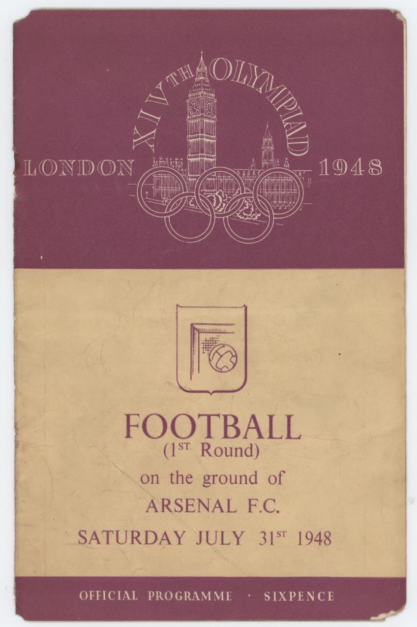 Official programme for the 1st round match played at Highbury on July 31st 1948. Great Britain won 4-3 after extra time.