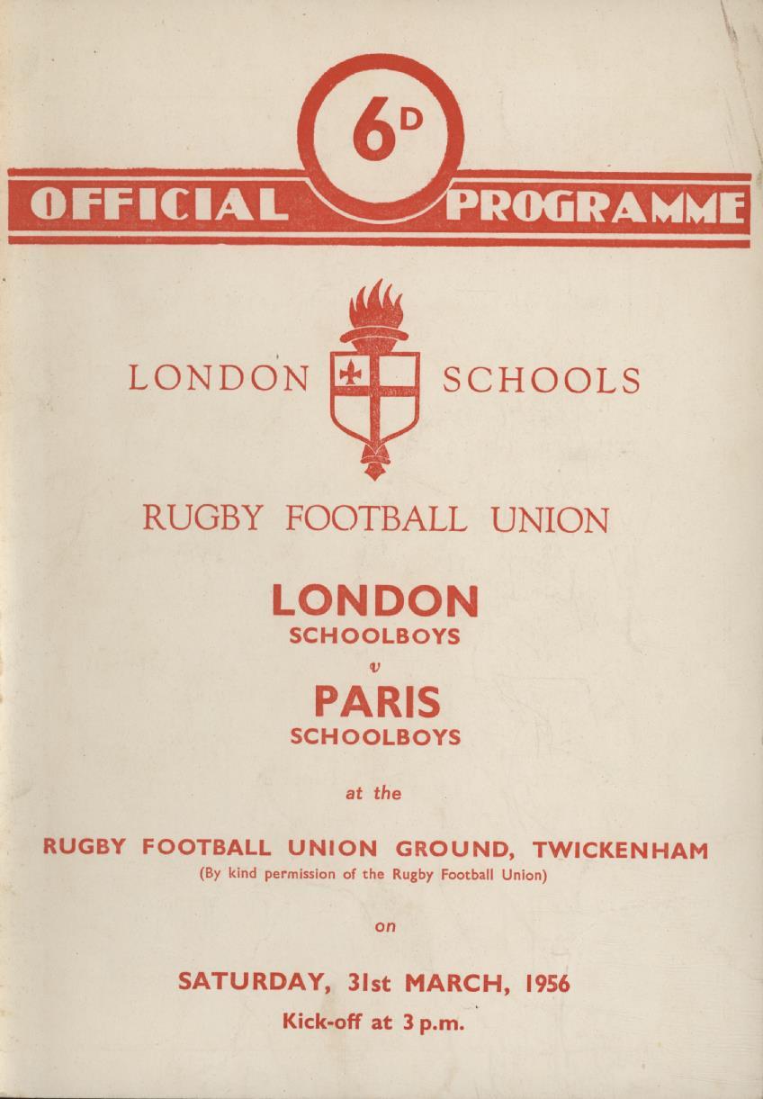 LONDON SCHOOLBOYS V PARIS SCHOOLBOYS 1956 RUGBY UNION PROGRAMME