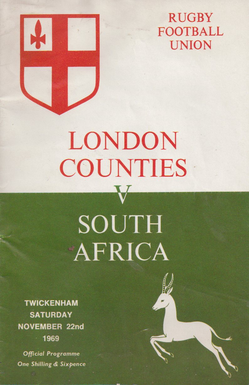 Official programme for the tour match at Twickenham between London Counties and South Africa on November 22nd 1969.