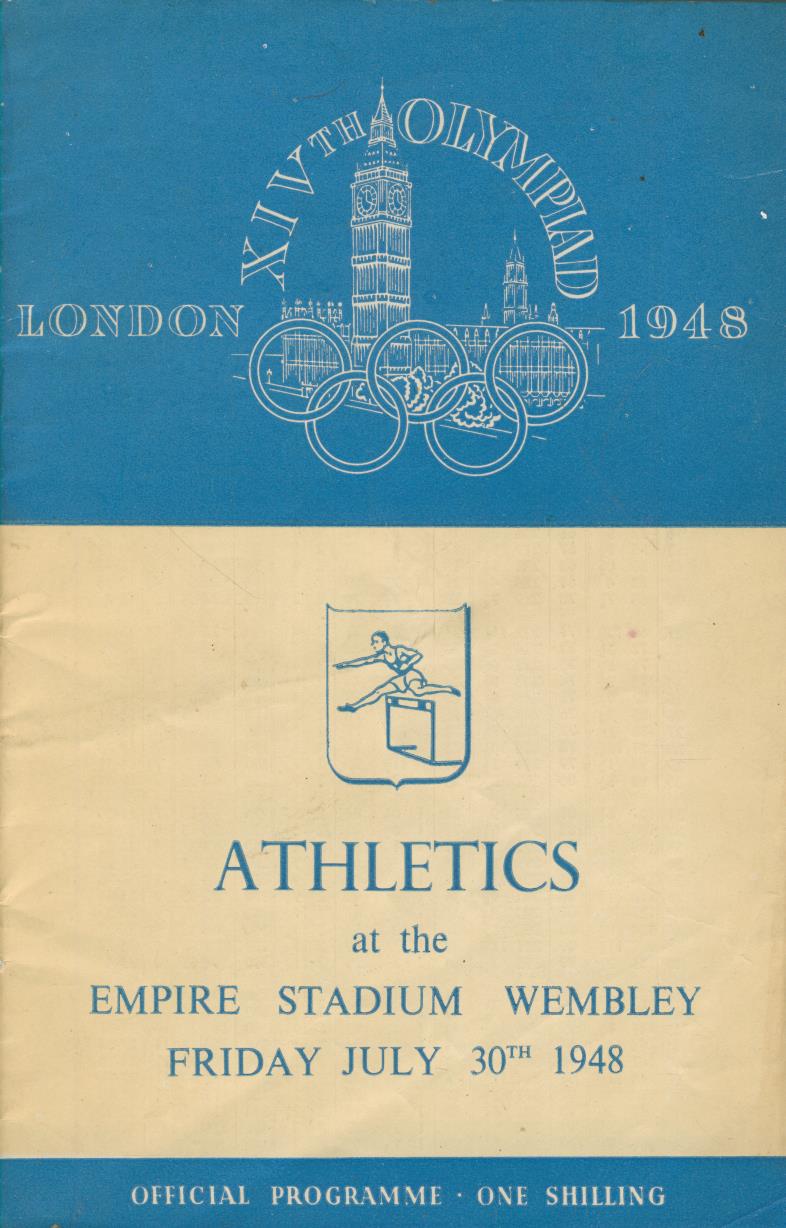 Official programme for the Athletics at  the 1948 London Games at Wembley, 30th July 1948. Events that day included sprint heats and high jump final.