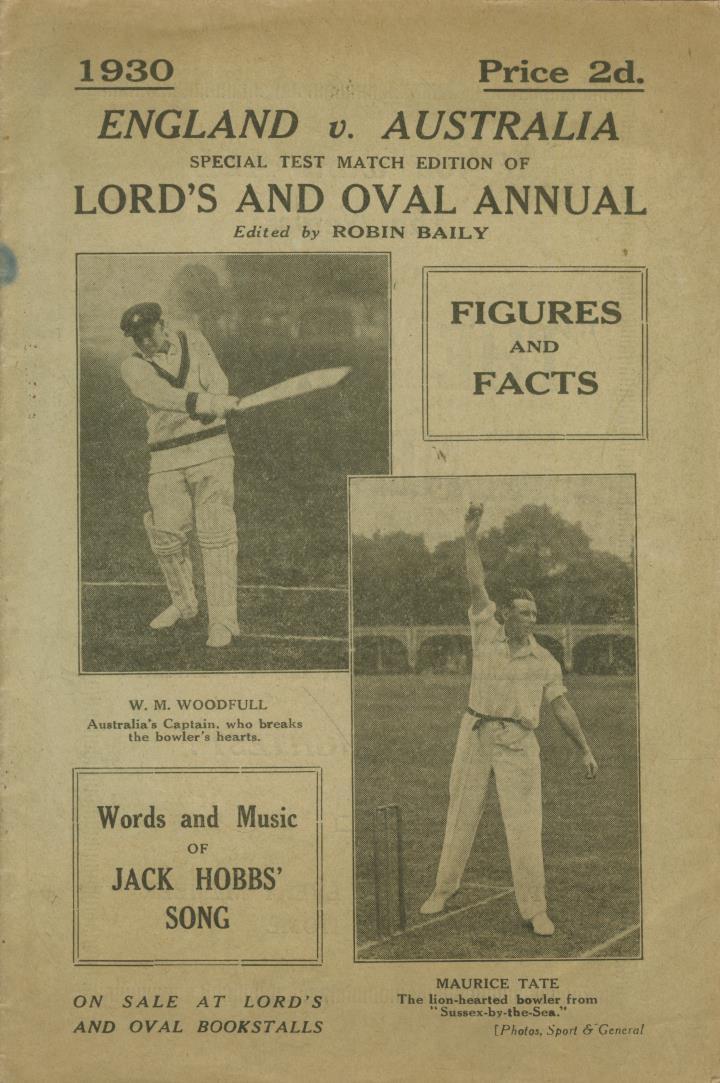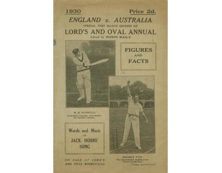 Cricket » Cricket Brochures » Ashes Tour Guides » LORD'S AND OVAL ANNUAL - ENGLAND V AUSTRALIA 1930