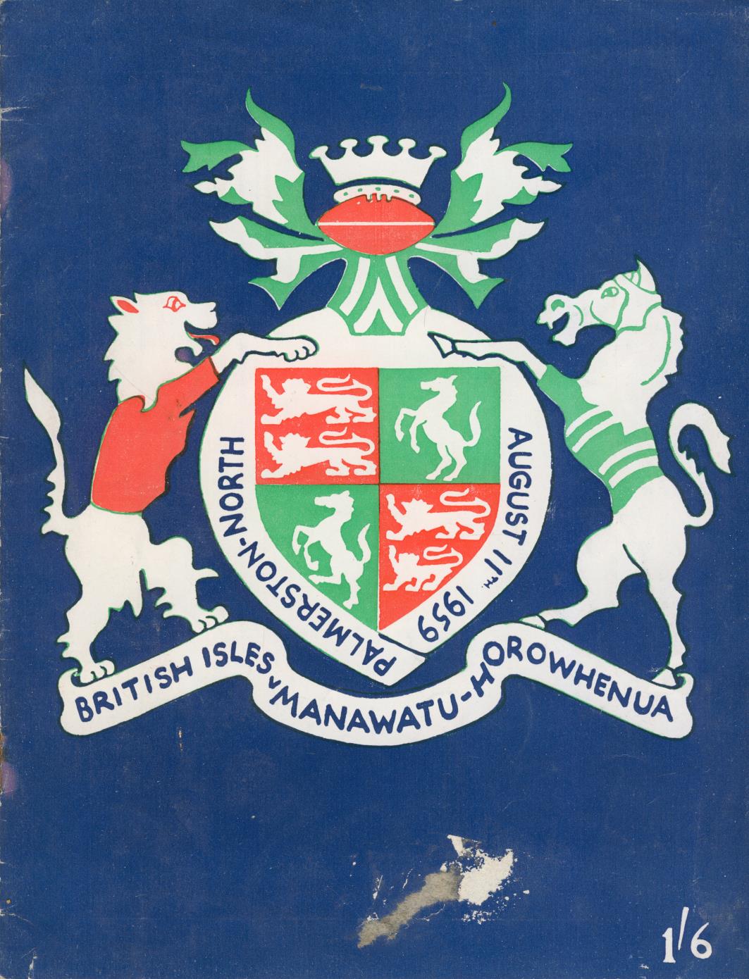 Official rugby programme for the tour match between Manawatu and the British Isles at Palmerston North on August 11 1959.