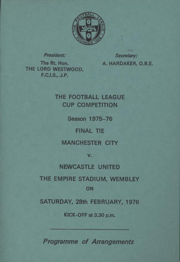 Football » Football Memorabilia » Football Fixture Cards and Itineraries » MANCHESTER CITY V NEWCASTLE UNITED (LEAGUE CUP FINAL) 1976 - ROYAL BOX PROGRAMME OF ARRANGEMENTS