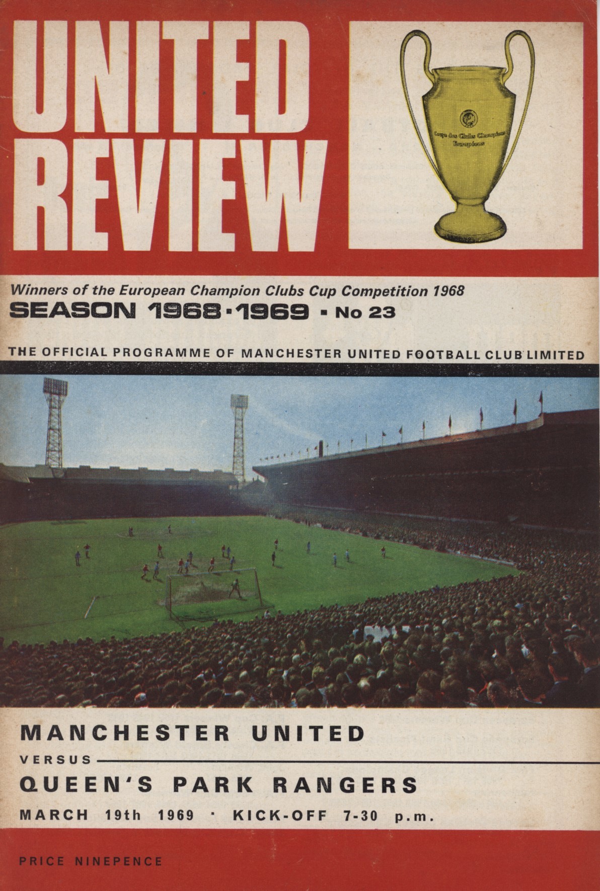 MANCHESTER UNITED V QUEEN'S PARK RANGERS 1968-69 FOOTBALL PROGRAMME (UNITED WIN 8-1)