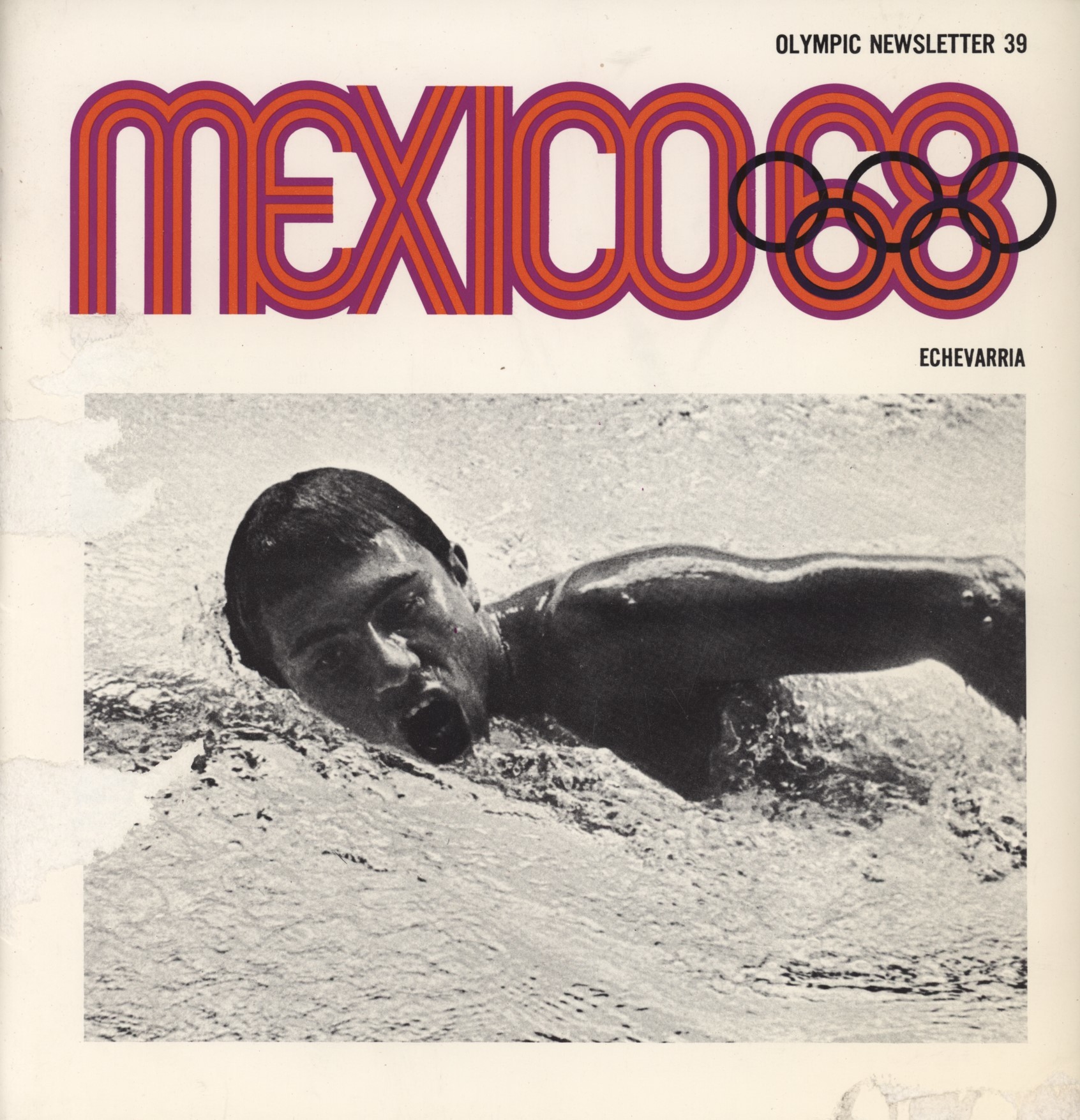 From the official newsletter series documenting the Mexico Olympics, this issue profiling the great Mexican swimmer Guillermo Echevarria, who briefly held the World Record in the 1500m
