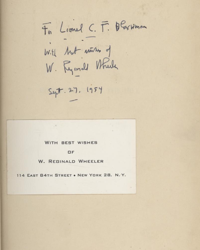 First edition. 8vo. 152pp. Cloth-covered boards. Some rubbing and fading to boards Good condition. Signed and dedicated by the author W. Reginald Wheeler, who provides the Foreword, to front fly-leaf (with his business card tipped in alongside).