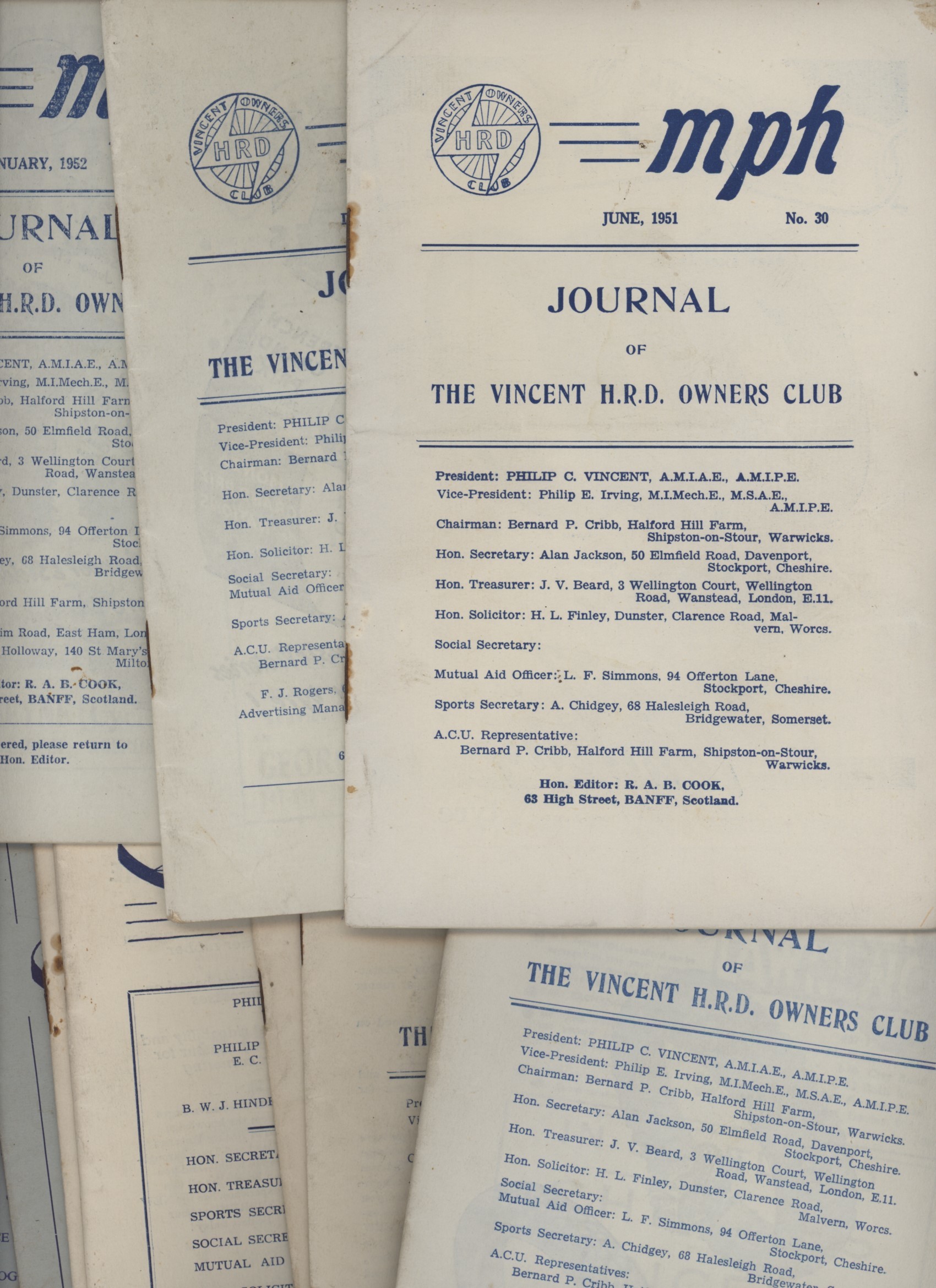 Sixteen issues of MPH, the journal for owners of Vincent H.R.D. motorcycles, dating from 1951 to 1956. The issues included are 30, 36, 37, 38, 39, 45, 46, 47, 52, 56, 58, 70, 81, 82, 85 and 86.