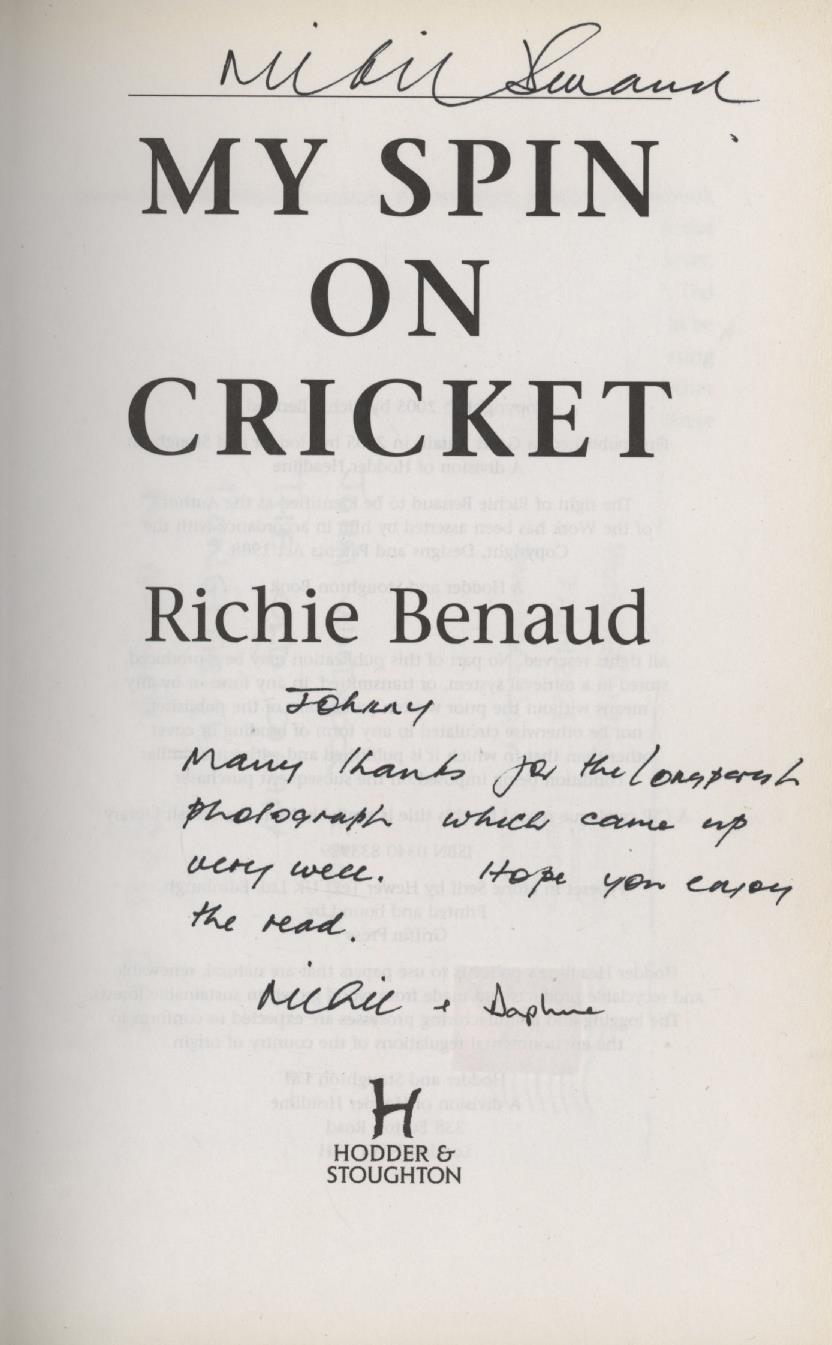 8vo. 294pp. Dust-wrapper, very good. Signed by Benaud to title page with a further dedication to John Woodcock, signed by both Benaud and his wife Daphne. From the collection of the well-known cricket writer John Woodcock.