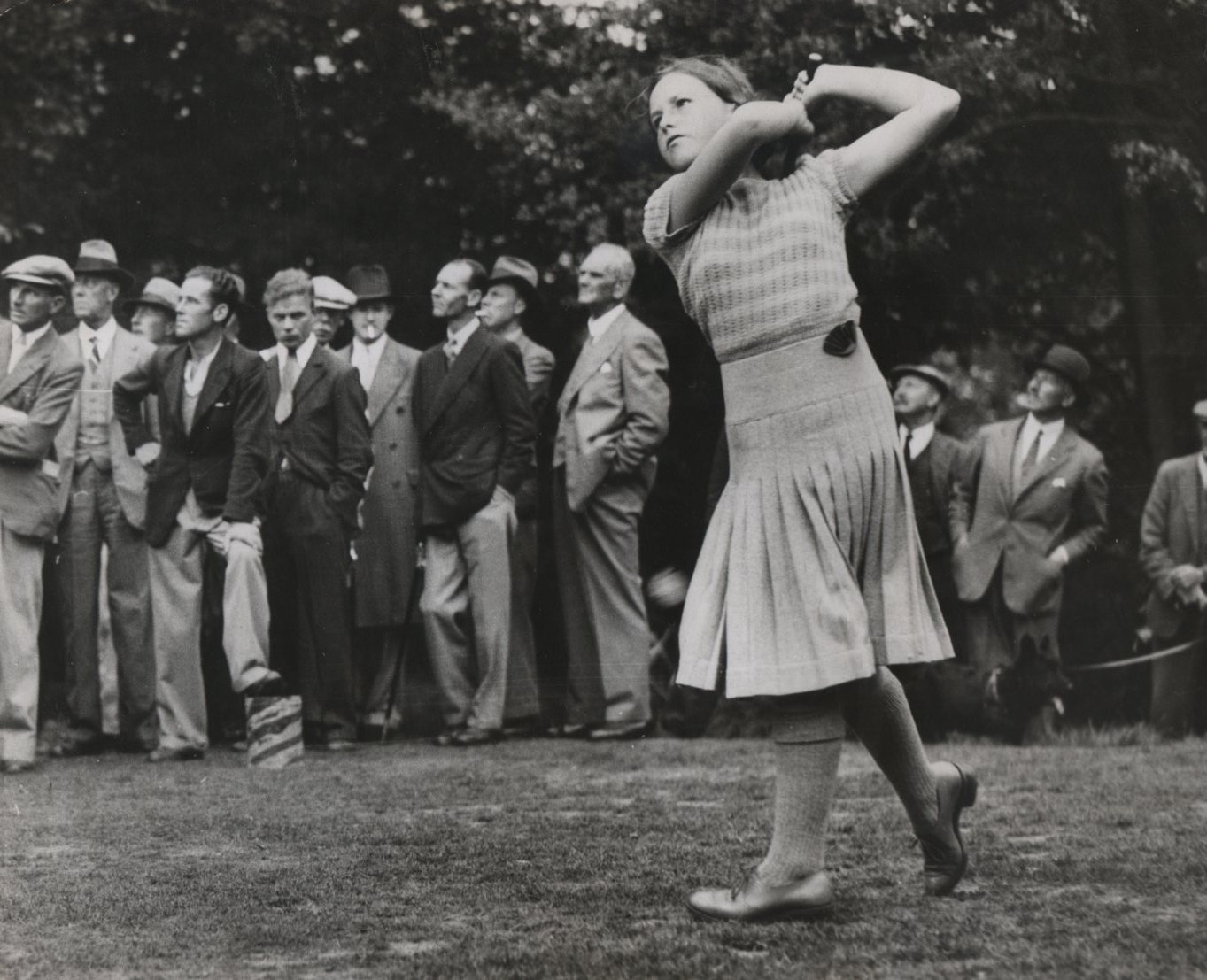 Original Press photograph of golfer Nancy Jupp at the age of 13 playing in the Girl's Championship at Stoke Poges in 1934.
